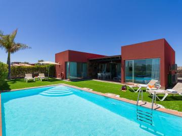 Villa Vista Dorada 134 Terraza y oferuje odkryty basen, ogród, taras i bar.Obiekt Piscina Privada Maspalomas znajduje się w dzielnicy Sonnenland w San Bartolomé de Tirajana, zaledwie 2,8 km od plaży Meloneras.Na miejscu dostępny jest bezpłatny prywatny parking.W okolicy można uprawiać turystykę pieszą i łowić ryby.Klimatyzowany apartament obejmuje 2 sypialnie, salon, w pełni wyposażoną kuchnię z lodówką i ekspresem do kawy oraz łazienkę z prysznicem i bezpłatnym zestawem kosmetyków.Pościel i ręczniki są zapewnione.Personel całodobowej recepcji mówi po niemiecku, angielsku i hiszpańsku.Na miejscu dostępny jest plac zabaw dla dzieci.W obiekcie Villa Vista Dorada 134 Terraza y Piscina Privada Maspalomas dostępna jest wypożyczalnia rowerów i samochodów.Plaża De Las Mujeres oddalona jest od obiektu o 2,8 km, a park wodny Aqualand Maspalomas – o 3,4 km.Odległość od lotniska Gran Canaria wynosi 29 km..